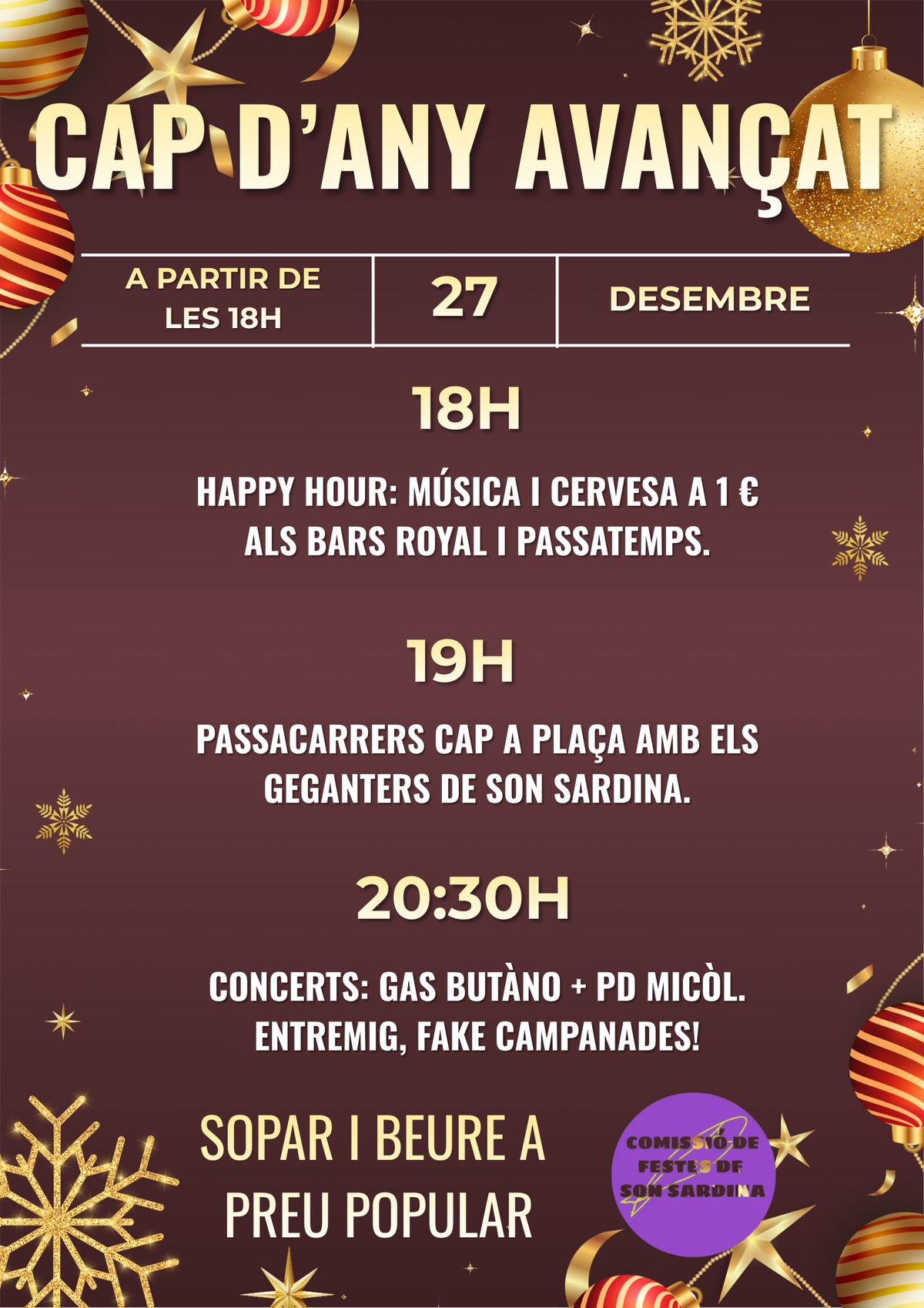 Aquí teniu el cartell complet del nou horabauxa sardiner, el CAP D'ANY AVANÇAT, organitzat per la Comissió de festes de Son Sardina.