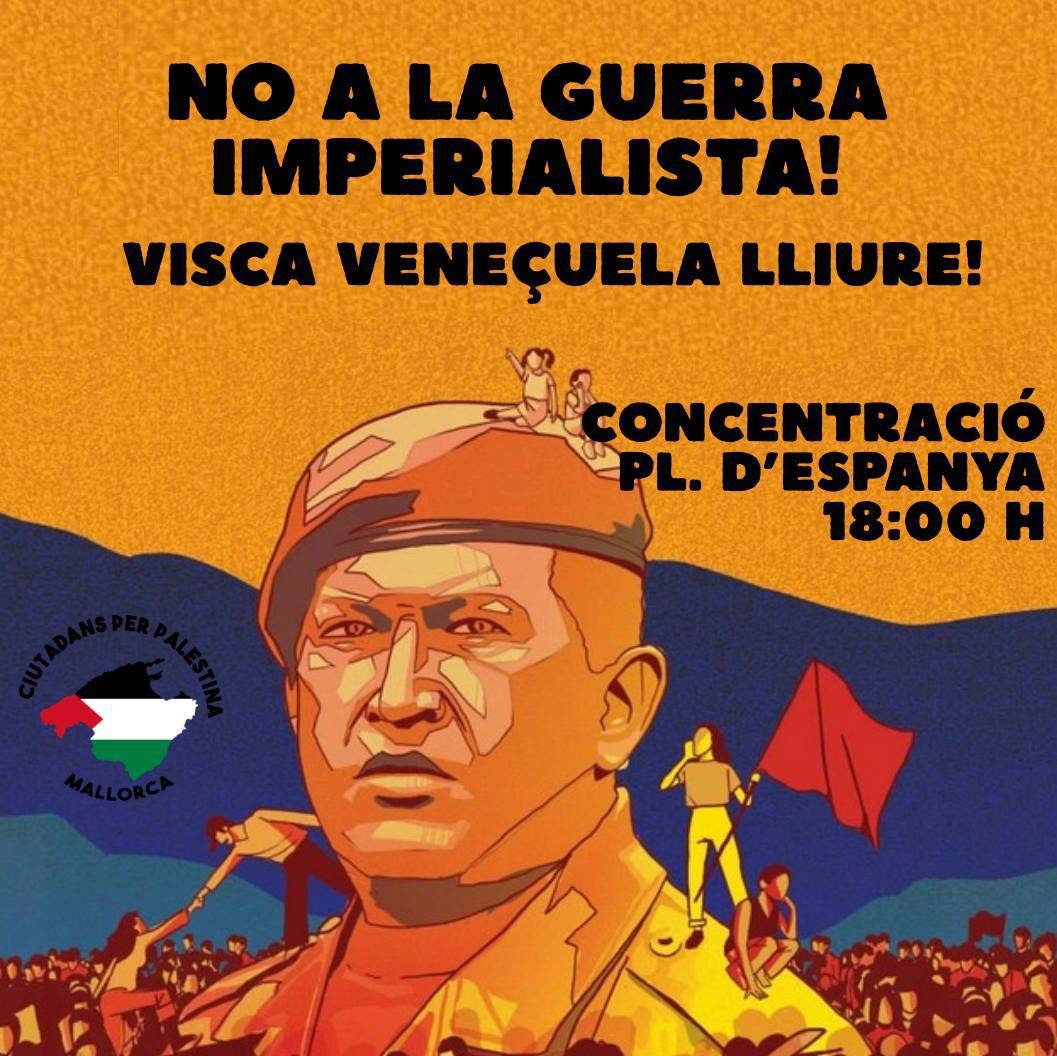Ens sumam a les protesta convocada avui per rebutjar amb totes les nostres forces l'agressió imperialista al poble de Veneçuela i defensar la seva plena sobirania. Aquest atac que podem definir com a cop d'estat respon als interessos econòmics estatunidencs i només cerca el saqueig i espoli dels seus recursos naturals.