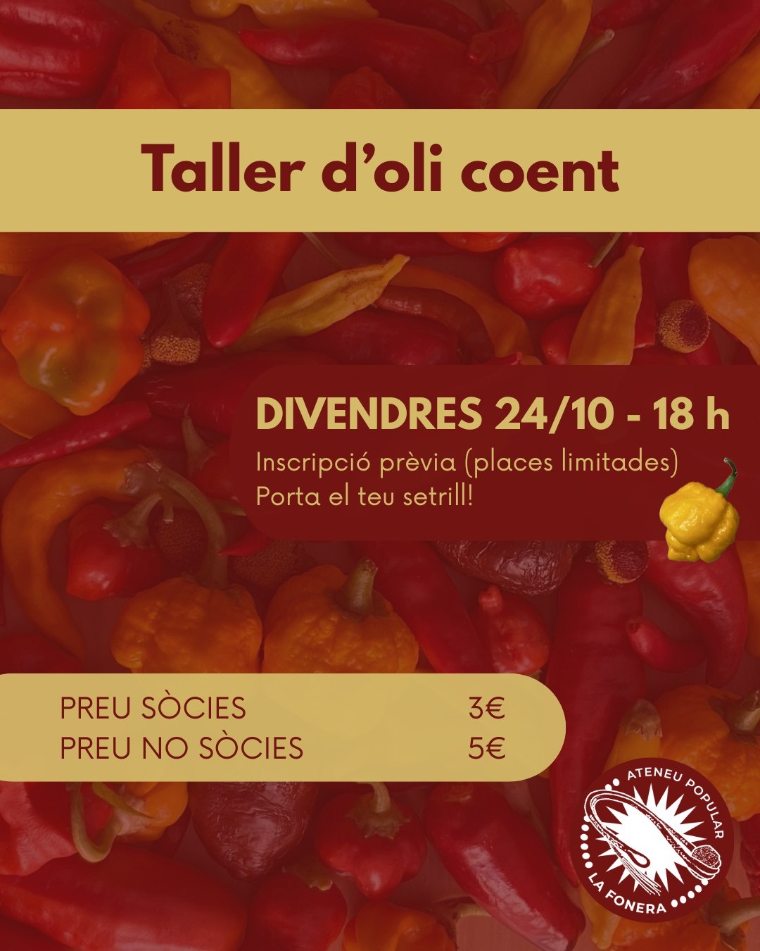 En @tomeu95 ens explicarà com els elabora ell i en podreu fer un tast! DU EL TEU SETRILL i després faràs el teu propi oli coent, com més t'agradi, i te'l podràs endur cap a casa. Sempre és un bon moment per a fer plorar el teu cunyat que dretaneja un poc.