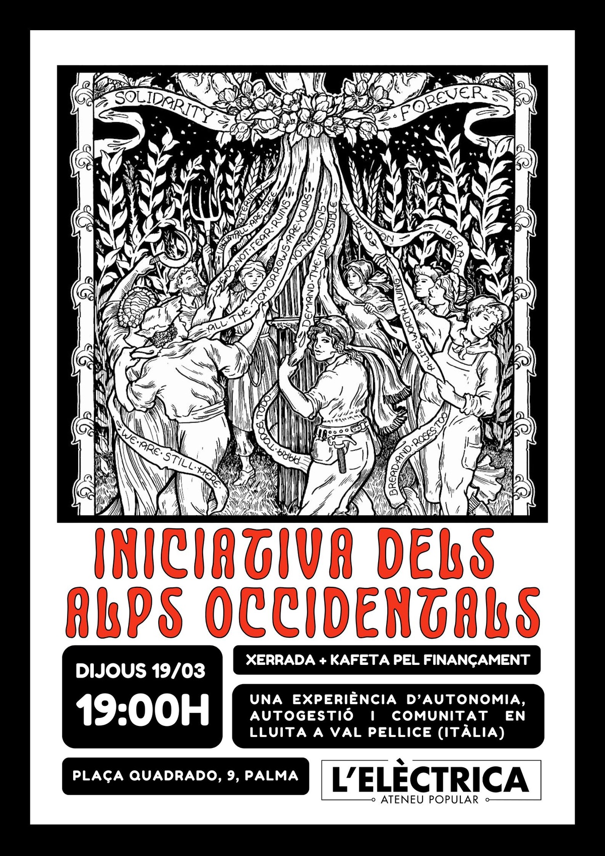 La Iniciativa dels Alps Occidentals és un procés polític radicat a Val Pellice (estat italià) involucrat en diferents projectes comunitaris que des de una perspectiva agroecològica cerca construir autonomia en diversos aspectes de la vida. Un grup de gent amb anys de vida frugal a les seves esquenes, altres afrontant per primera vegada la urgència d'una idea renovada de convivència, de vida comunitària autònoma i agroecològica, es troba per a donar veu a les seves necessitats col·lectives i els seus desitjos d'una vida lliure.